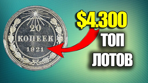 20 Советских копеек 1921 года стоимостью в $4300. Топ самых дорогих и редких монет России и СССР с аукциона