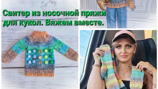 Свитерок из носочной пряжи для кукол. Вяжем вместе.