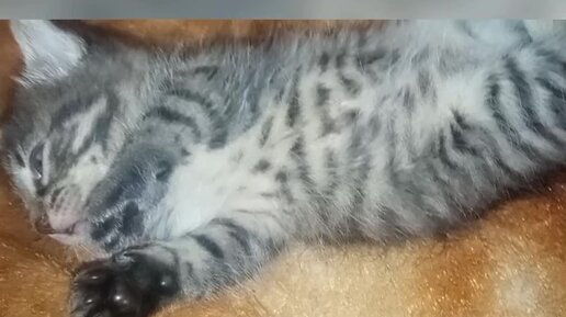 Котëнок спит с открытыми глазами😮
