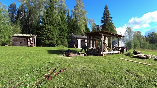 Почти доделал крышу на беседке. Грибной суп. Сложил дрова. 2 серия. /2 фильм Поход БЕСЕДКА /
