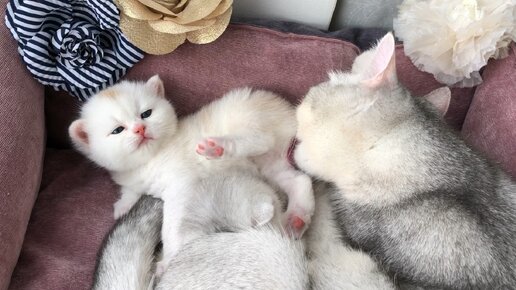 Кошка Кайли моет своего котёночка Персея. Ему 20 дней.