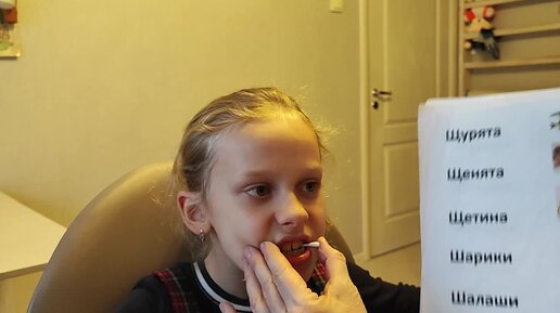 Ставим шипящие с помощью ватной палочки. Демонстрация с помощницей