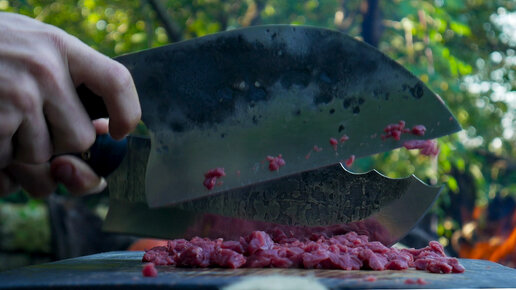 СОЧНЕЙШИЙ БУРГЕР ИЗ РУБЛЕНОГО МЯСА С ПЕЧЕНОЙ ТЫКВОЙ И ЛУЧКОМ ПРЯМО НА КОСТРЕ