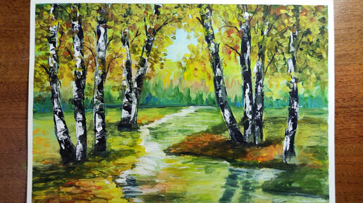 Как нарисовать Березы пальцами ватными палочками и мастихином