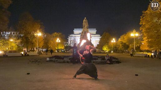 Мастер огня – уличный фаерщик устроил эффектное огненное шоу под открытым небом