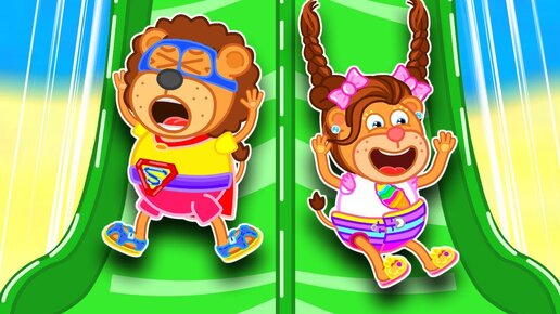 Lion Family | Be Brave! You Can Do It Too. Plays With Colorful Slide | Cartoon for Kids