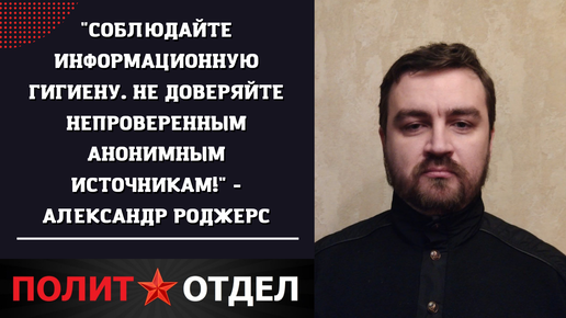 "Соблюдайте информационную гигиену. Не доверяйте непроверенным анонимным источникам!" - Александр Роджерс
