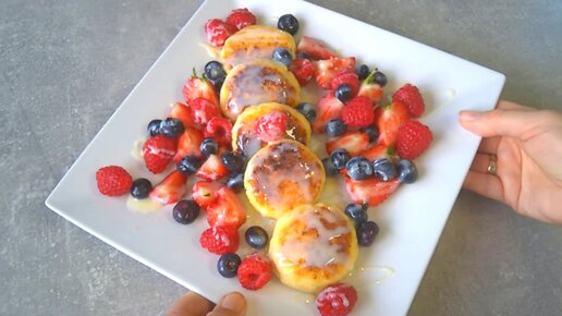 Идеальные сырники и красивая подача на завтрак.Сырники с ягодами и сгущенкой