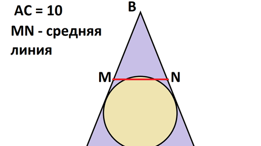 Снова ЕГЭ. Доказать, что средняя линия равнобедренного треугольника пересекает вписанную в этот треугольник окружность.