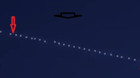 Вереница таинственных объектов в ночном небе.