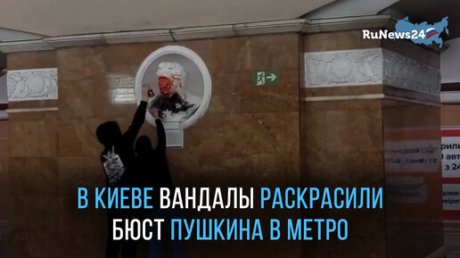 В Киеве вандалы раскрасили в красный и черный цвет бюст Пушкина в метро