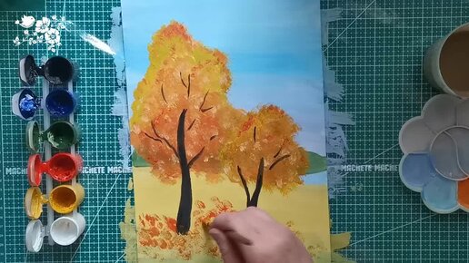 Осенний пейзаж самым простым способом - справится даже ребёнок
