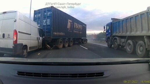 На северо-востоке КАД столкнулись две фуры и микроавтобус. Пробка растянулась на несколько километров