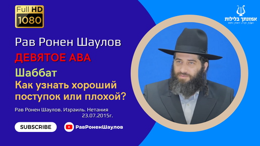 Рав Ронен Шаулов - Девятое Ава. Шаббат. Как узнать хороший поступок или плохой?