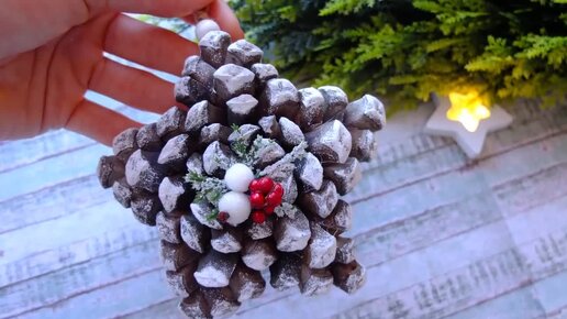 Елочная игрушка звезда из сосновой шишки, новогодняя игрушка своими руками
