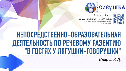 Непосредственно-образовательная деятельность по речевому развитию "В гостях у Лягушки-Говорушки"