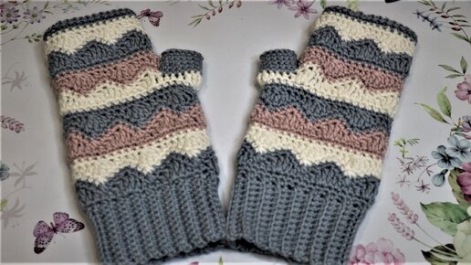 Митенки крючком. Вяжутся быстро и очень просто.