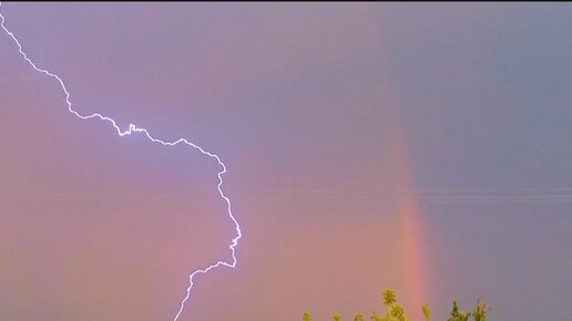 Удивительное зрелище - радуга с молнией, редкое явление природы!