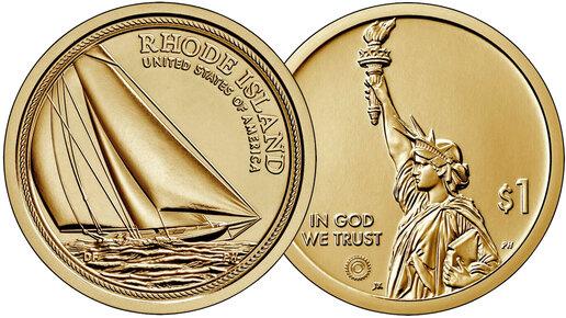 Монета 1$ Яхта Релайэнс. Серия Американские Инновации ( Род-Айленд).