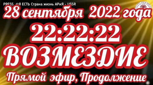 📽️Прямой ЭФИР 28.09.2022 22:22:22 🔥©Я ЕСТЬ Страна жизнь АРиЯ – USSR 📣 ВОЗМЕЗДИЕ - ПРОДОЛЖЕНИЕ✅