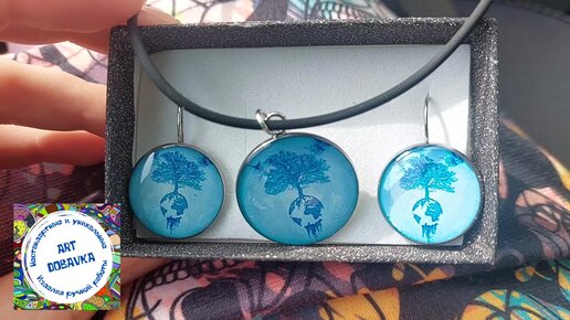 Комплект серьги и кулон из эпоксидной смолы ручной работы на заказ