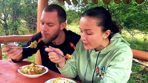 Деревенские труды приносят плоды. Сделали обед в казане. Жизнь простых людей в деревне
