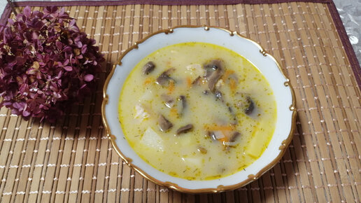 Замечательный аппетитный суп с грибами и курицей