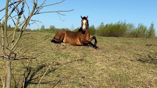 Лошади спят лежа, вот один из примеров, как это происходит.