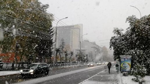 Первый снег в сентябре в Сибири.
