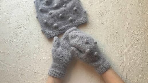 ВЯЗАНЫЕ РУКАВИЧКИ С АНАТОМИЧЕСКИМ ПАЛЬЧИКОМ ПУШИСТЫЕ ГОРОШКИ