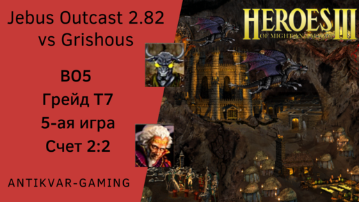Герои 3. PvP vs Grishous. Jebus Outcast 2.82. Грейд Т7. BO5. 5-я решающая игра. Счет 2:2