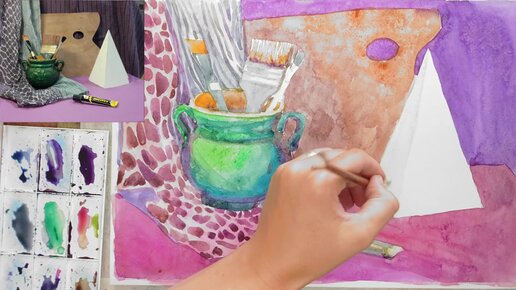 Натюрморт с атрибутами искусства и гипсовым телом акварелью Урок 2