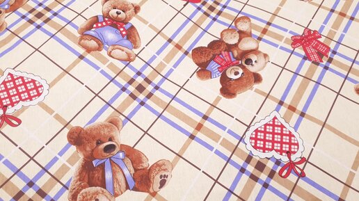 Ткань Поплин для детского постельного белья с рисунком медвежат и сердечек. Российский 100% хлопок.