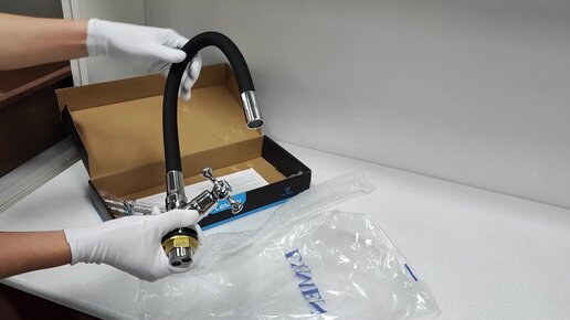 Стильный смеситель для кухни LEMEN с гибким изливом.