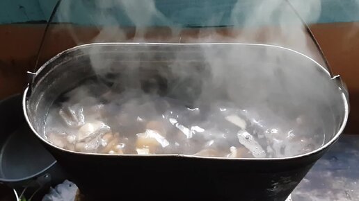 Лесная кухня. Грибы с тушёнкой на костре.