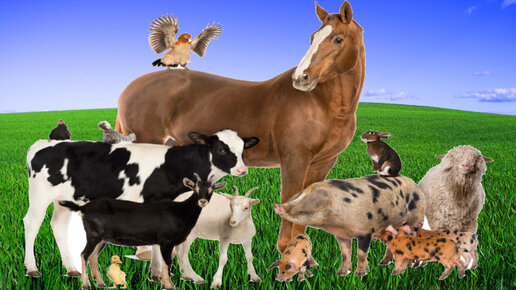 Звуки диких и домашних животных: слонов, собак, лошадей, коров, кошек. Учим названия животных на английском языке