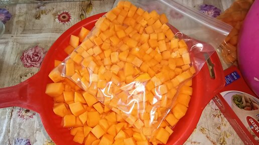 Удобная компактная заморозка тыквы на зиму.
