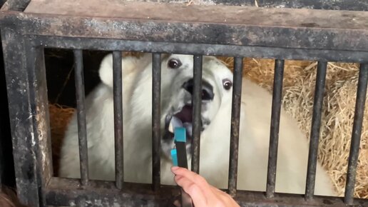 Спорт и снег! В Московском зоопарке показали, как там выхаживают белого медведя по кличке Диксон. Зачем щекочут лапы?