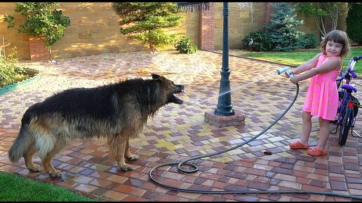Водные процедуры Аргуна. Кобель Длинношерстной немецкой овчарки 7 лет. Одесса. Украина.