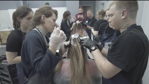 Мелирование волос классическое // Два практиканта под руководством мастера делают первый раз в жизни // Как сделать классическое мелирование