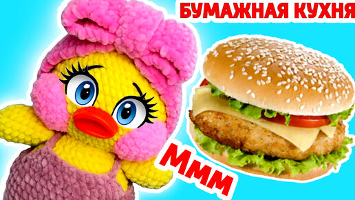 БУМАЖНАЯ КУХНЯ | Как сделать Бургер из Бумаги | Сюрпризы Юльки DIY | Бумажная Еда для УТИ ДУСИ
