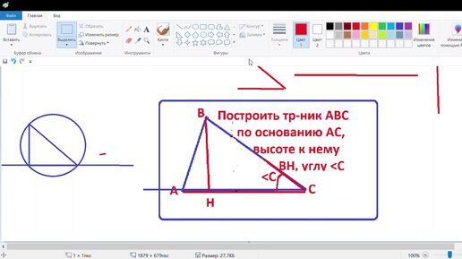 Построение треугольника по основанию, прилежащему углу, и высоте, проведённой к основанию