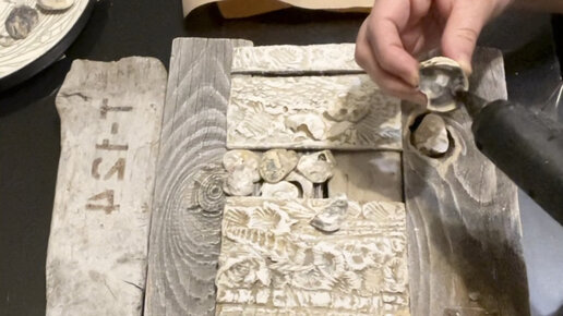 Старые доски, ракушки, гипсовые отпечатки… - коллаж