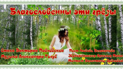 БЛАГОСДОВЕННЫ ЭТИ ГРЕЗЫ. экв. Стихи. В. Павловская, муз, аранж. А. Голуб, вокал. Л. Великанова, звук. А. Макалиш, монтаж. В. Зубкова