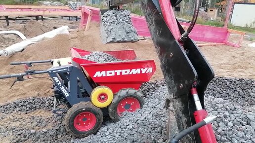 Видео-Отзыв. Ландшафтные работы с помощью мотомула. "ПЯТЬ строительных тачек за ОДНУ ходку. Один рабочий делает работу за пятерых"