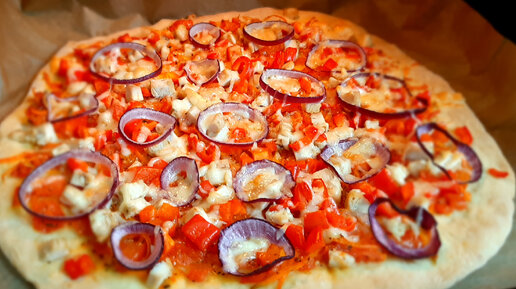 Ароматная пицца! Тесто без дрожжей. Начинку можно использовать любую.