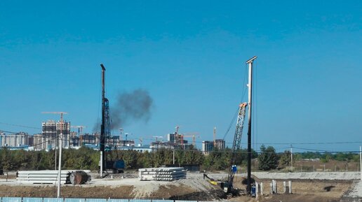 Краснодар. Дворец самбо. Строительство. Забивка свай трубчатым дизель-молотом