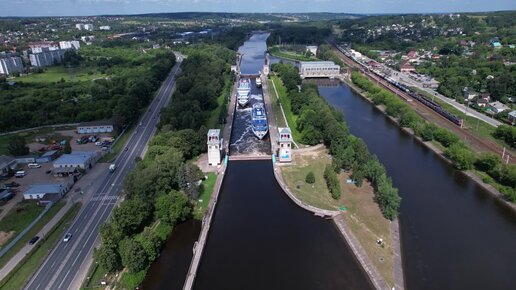 Пролетая над каналом имени Москвы. Шлюзование плавсредств