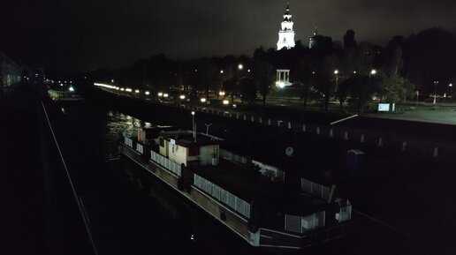 Отправление теплохода с города Кострома осенним вечером. 29.09.2022 Вид на набережную, огни и теплоходы