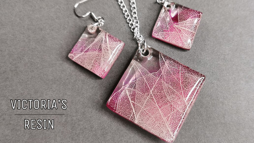 DIY серьги и кулон скелетированные листья из уф-смолы